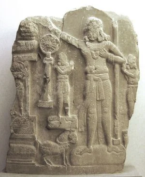Representación de Chakravarti del 1er siglo AC, escultura preservada en el museo Guimet en París.