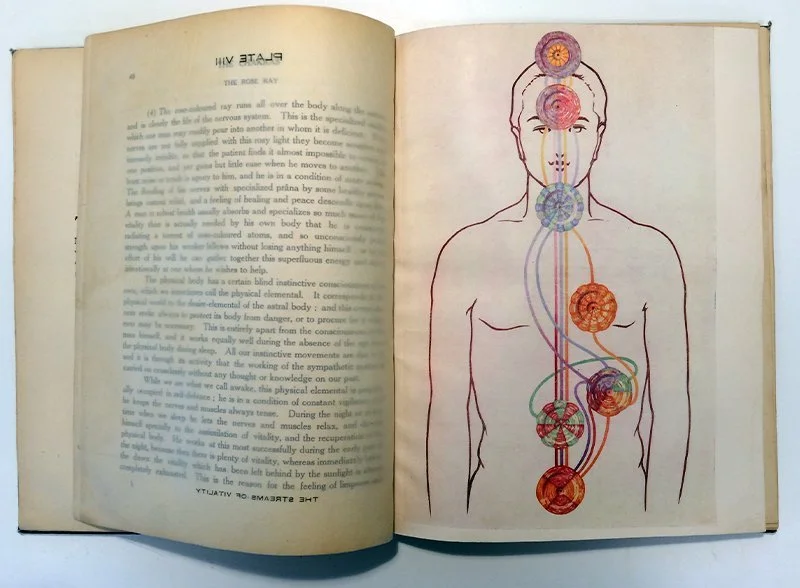 Luego, aparece Charles W. Leadbeater con su libro The Chakras (Los Chakras) en 1927, quien se proclamaba clarividente y renunció como sacerdote anglicano para formar parte de la Sociedad Teosófica.
